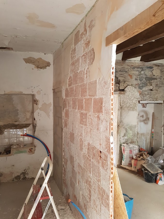 Vi har tagit upp ett dörrhål och fått tag på dörrar i grannbyn vilka skall monteras. Slutligen skall golvet göras klart med befintliga antika klinkers och ett 8 m långt och 1 m högt järnstaket med medeltidssnitt införskaffas eller tillverkas och monteras.