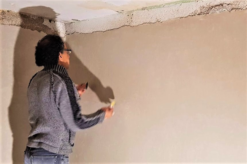 Taket som var i princip ihoprasat var i behov av total ombyggnation precis som överdelen av väggarna.