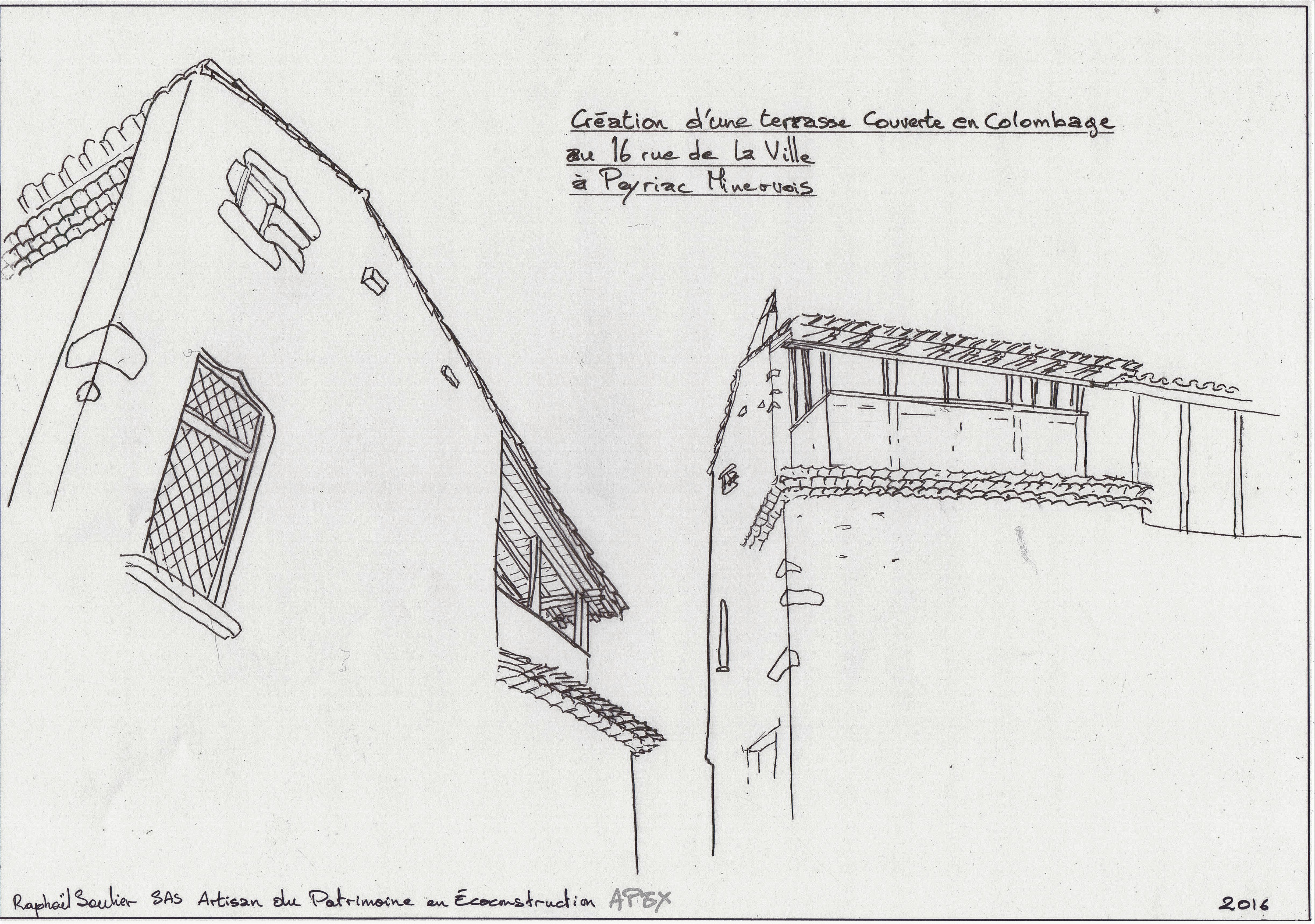 Efter att ha träffat STAP i Carcassonne och gått igenom möjliga historiskt korrekta lösningar för en terrass och med hjälp av arkitekt Nadine Hillebrant i Stockholm skissat på hur vi ville ha det kom vi fram till en gyllene medelväg som ritades och byggdes av vår vän Raphael och hans equipe på Apex som är specialister på hållbart historiskt byggande. Bygglovsprocessen var seriös men smidig och snabbt handlagd av vårt Mairie.