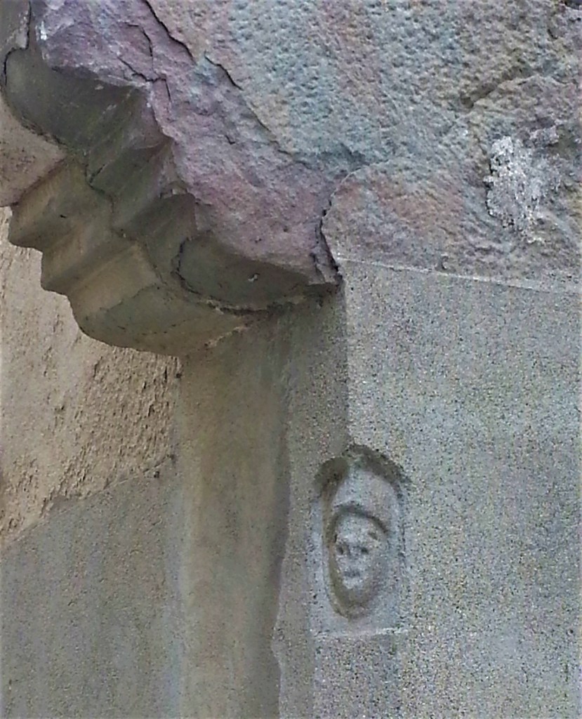 Portar, fönster och vägkorsningar ansågs som extra känsliga för onda makter och kanske var det därför en stenhuggare lät detta ansikte titta fram just här.