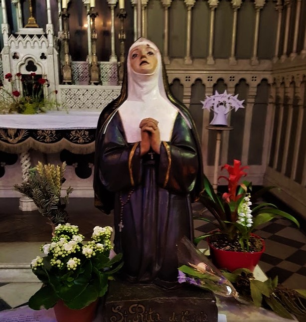 En lite fredligare bild får avsluta dagens aningen krigiska episod och då en bild av St Rita (min hustrus namne) ett av de runt 10,000 katolska helgon som lär finnas. St Rita var Augustinernunna på 1400-talet och är skyddshelgon för ”omöjliga fall” och vid äktenskapsproblem!
