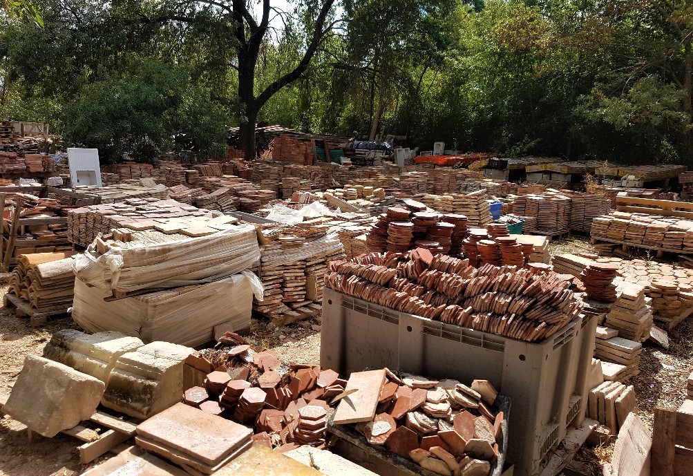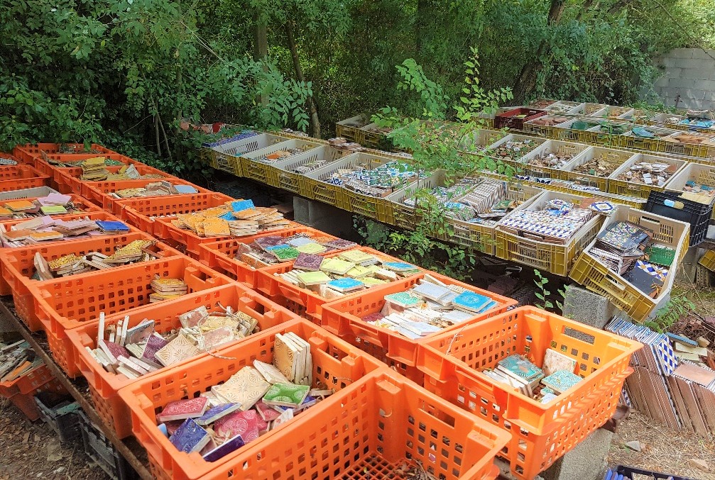 Snabbt borstade vi av det värsta och lastade 70 smutsiga tomettes att sälja. Dessa golvkakel av terrakotta är klassiska härnere och har tillverkats sedan medeltiden och vårt utbud och det vi nu söker är en blandning om inte från alla dessa sekel så åtminstone från de senaste tre.