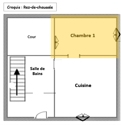 Förutsättningarna är en begränsad yta på cirka 7 m2 med två dörröppningar (till kök och till gården) samt en fönsterväg. Dessutom har ena långväggen en lätt valvform vilket också begränsar möblerbarheten. Lägger man därtill att vi behöver en kvalitativ dubbelsäng med längd för nordbor inser man snabbt att det måste bli en kreativ lösning.