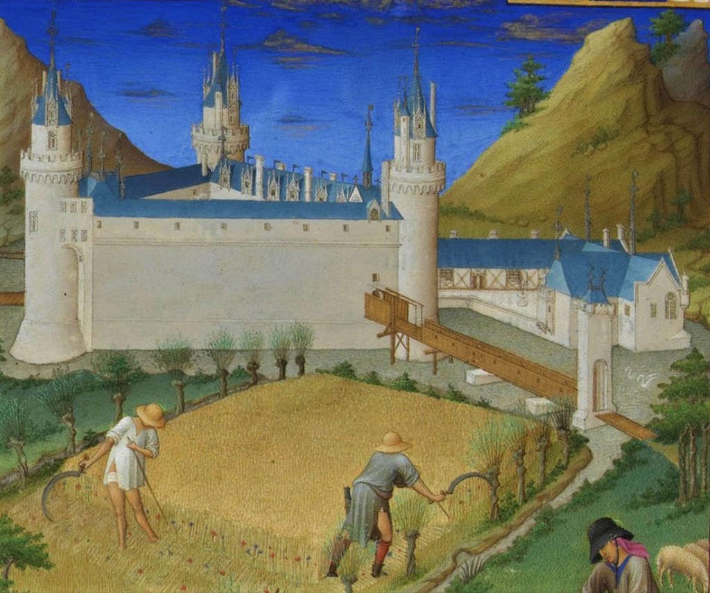 De bilder som ändå kanske mest skapat dagens bild av medeltida liv är ”Les très riches heures de Duc de Berry”. Greve Jean de Berry (1340 -1416) var yngre bror till Kung Charles V (1338 – 1380) som var den franske kung som stod för framgångarna under 100-årskriget. Brodern Jean var i olika omgångar greve för Auvergne, Poitiers med flera grevskap och även för oss i Languedoc, i några år. Dock är han mest ihågkommen idag för sitt beställande och samlande av oerhört påkostade, illustrerade manuskript.