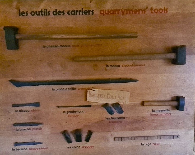 Stenbrytaren eller le carrier på franska, använde att antal olika verktyg för sitt tunga arbete att förse murarna med material. Verktyg som också tillverkades lokalt i smedjan.
