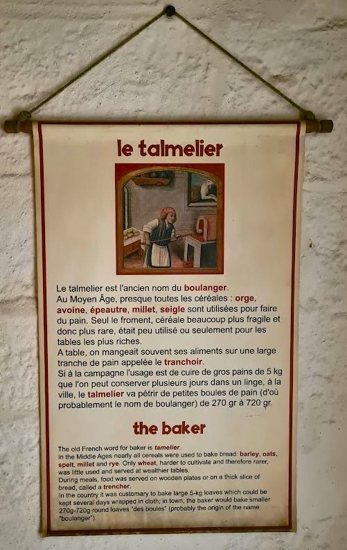 Bröd har ju alltid varit basföda och inte minst i Frankrike. På medeltiden var det vanligt med en samling varierade verksamheter runt slottet i en by, med hantverk av olika slag och absolut en eller flera ”talemeliers”(bagare). Det fanns ofta också en så kallade gemensam bakugn ”un four banal” som drevs kollektivt eller av byns talemelier, var bekostad av slottsherren och kunde användas av alla i byn.