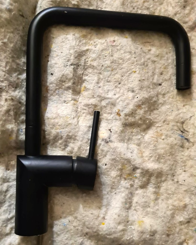 Vår blandare inköp i andra hand i Stockholm och som skall förses med flödesbegränsare och sedan monteras på köksbänken; men det får bli vid nästa vistelse hemma i Peyriac.