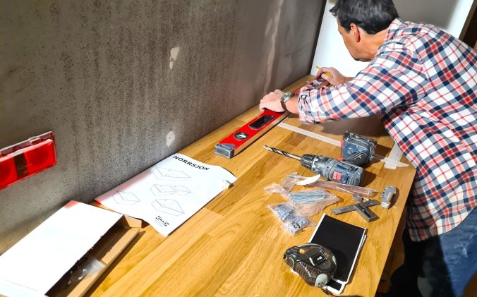 Dessutom blir ju avvägningen i lod och våg så mycket exaktare när man kan alla yrkesknep och då inte minst i ett rum med i det närmaste inga räta vinklar, Detta kommer vi ju ha igen när skåpluckor skall på plats.