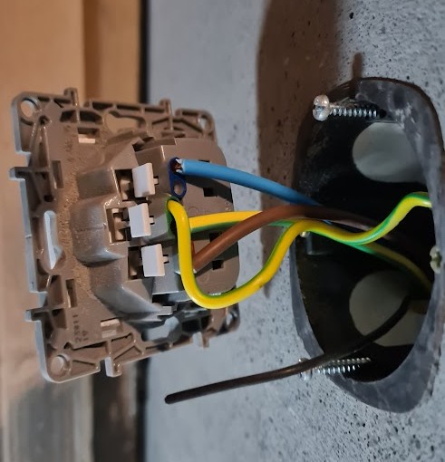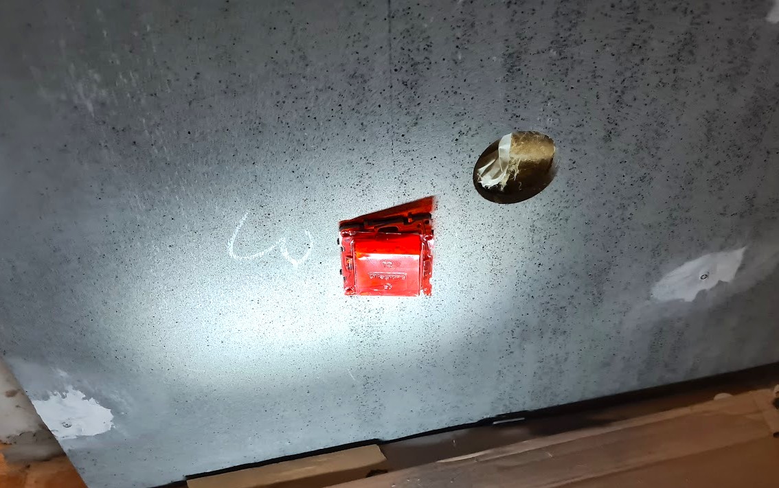 Detta eftersom vi tidigare valt att justera det högskåpet (för kyl och frys) och ge extra fritt spelrum för dess dörr. Sagt och gjort, nytt hål och snabb flytt av uttaget.