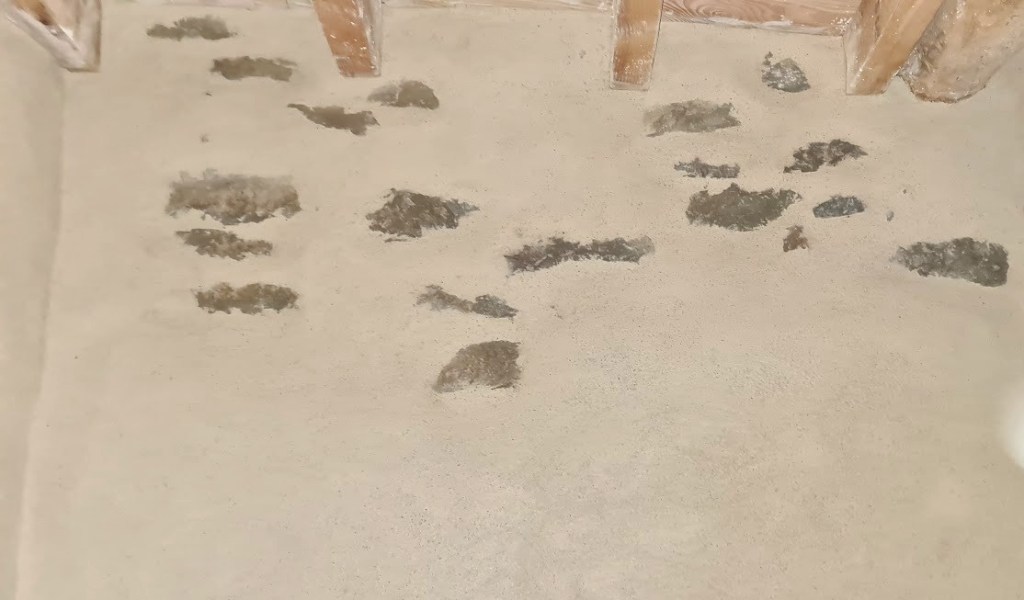 De hade lyckats att hitta sand i nästan exakt samma kulör som jag använt till bottenvåningen vilket var en förutsättning, då vi inte tillsätter pigment utan vill ha den lokala varma sandfärgen i rummen.