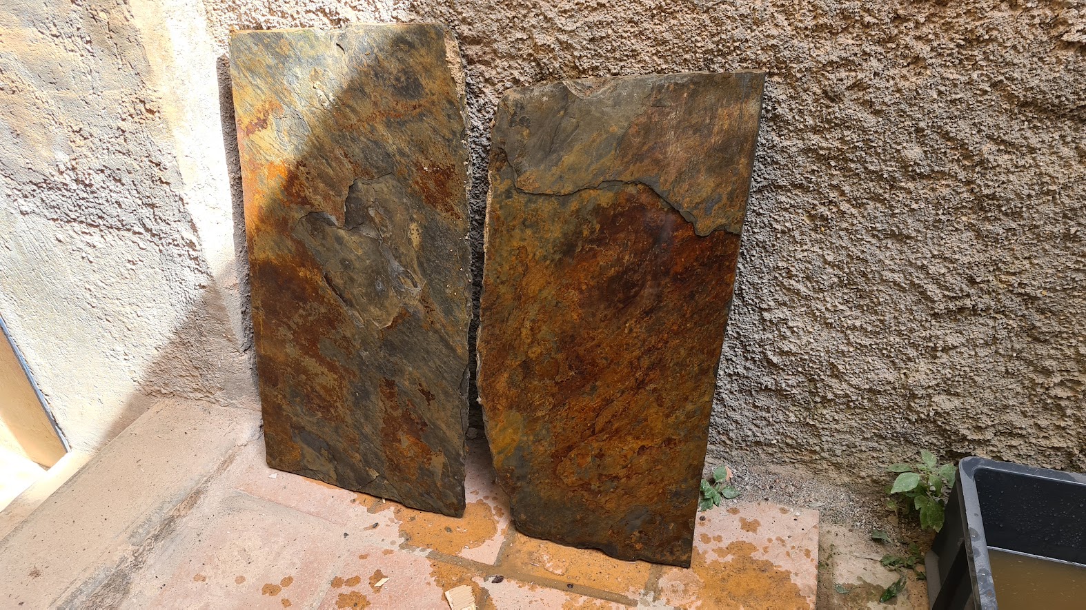Skifferplattorna rengjorda och oljade.