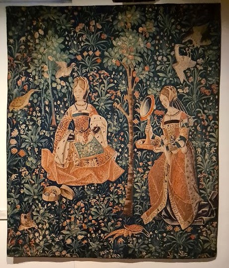 I Paris nyrenoverade och unika medeltidsmuseum, Cluny, på vänstra stranden återfinns sex gobelänger från sent 1400-tal eller tidigt 1500-tal vilka berättar om adelsdamen och enhörningen eller ” La Dame à la licorne”.