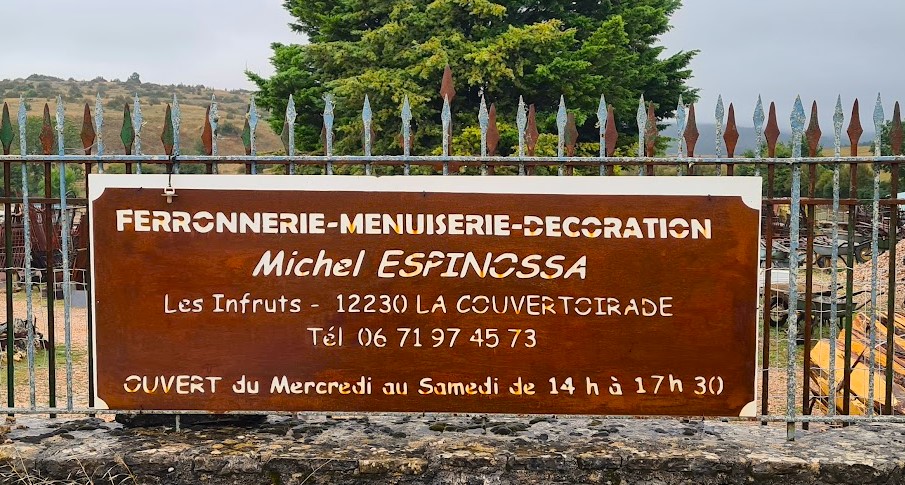 Vi är på jakt efter ett balkongräcke eller balustrad till vår terrass med medeltida stil på smidet. Allt som allt 9 m räcke behöver vi. Jag blev rekommenderad av en läsare att besöka Michel Espinossas unika anläggning utanför den lilla tempelherrebyn La Couvertoirade i Aveyron (12).