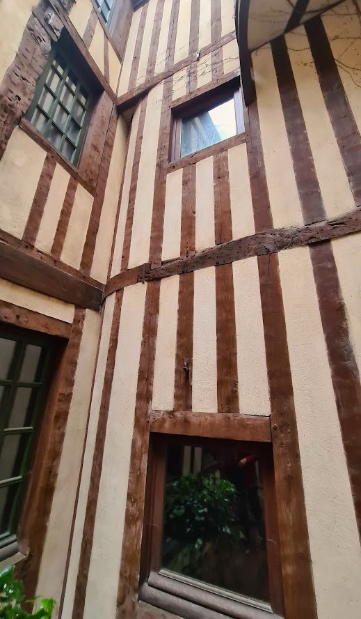 Inte minst imponerar innergårdens vackert återställda korsvirkesfasad med färgställning på såväl puts som ekbjälkar passande i Peyriac. I nedan bildserie framträder gårdsfasaderna i all sin prakt avslutat med en bild av hur det såg ut på 60-talet när man började återställningen.