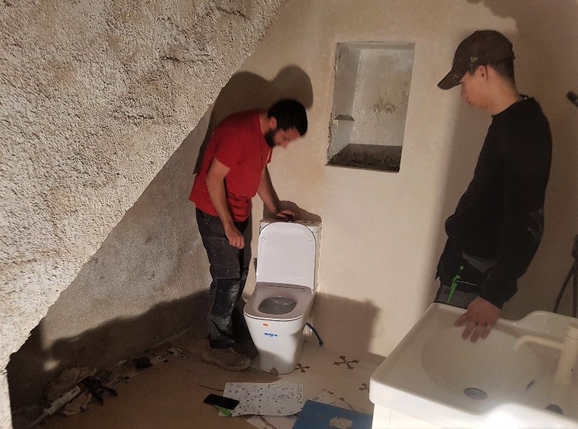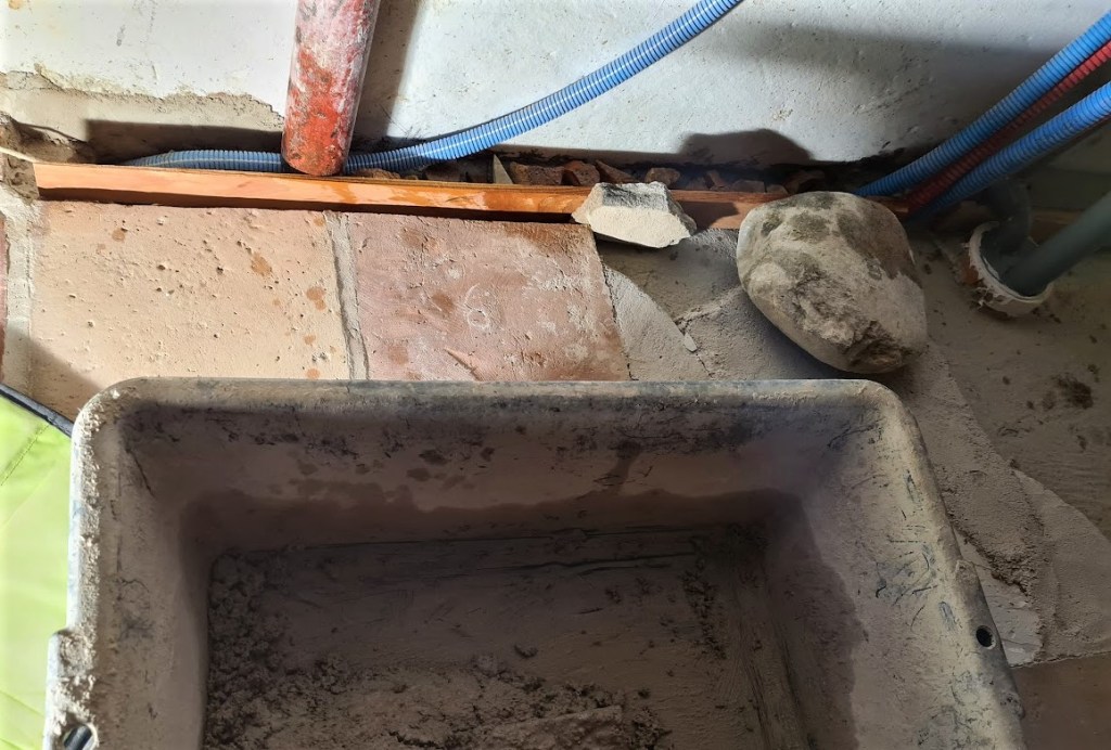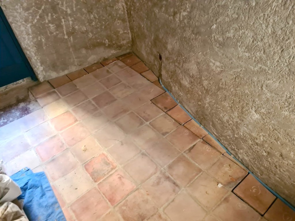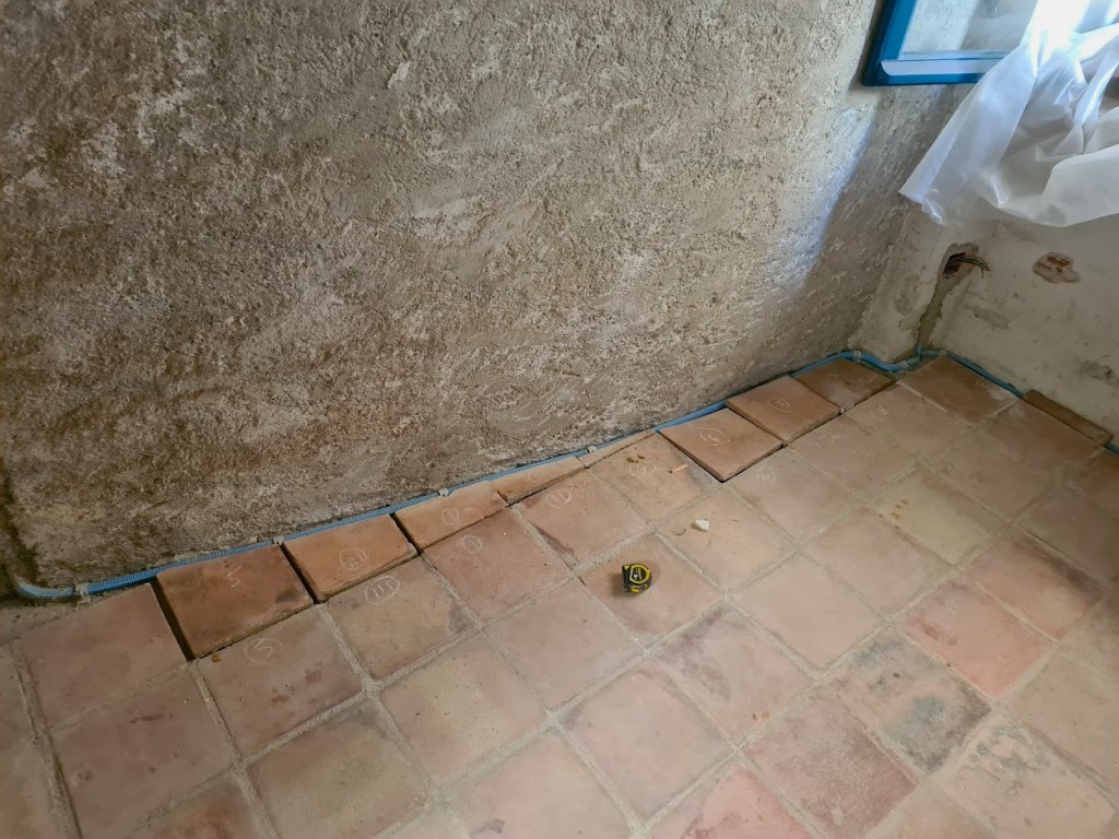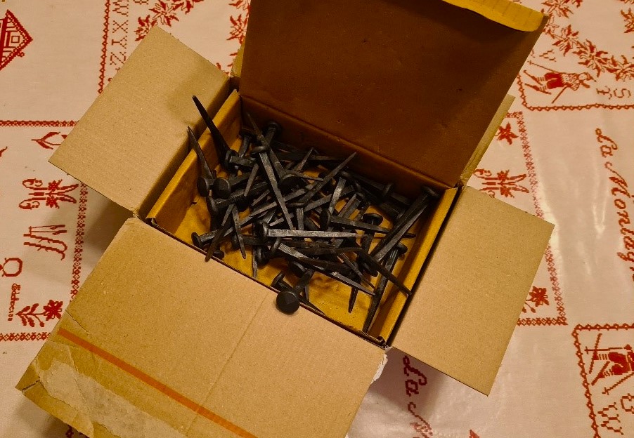 Nästa besök nere i Peyriac tar golvläggning vid med målet att skapa ett vackert medeltidsgolv. I nedan bilder den smidda spiken som väntar och en inspirationsbild tagen i Sverige.