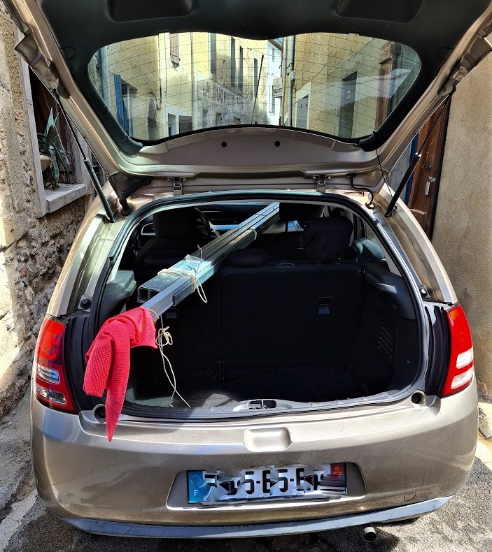 Hyrsläp som klarar dessa längder var det inte tal om att finna enkelt, så det blev en 20 m3 lastbil med skåp som jag hyrde på Leclerc i Carcassonne. Efter en snabb incheckning bar det av och det var kul att köra lastbil igen. Tror jag bara gjort det en gång sedan lumpen, då jag bland mycket annat körde Volvo F86 (som förvisso var några storlekar större) när vi satte upp militärsjukhus i fält.