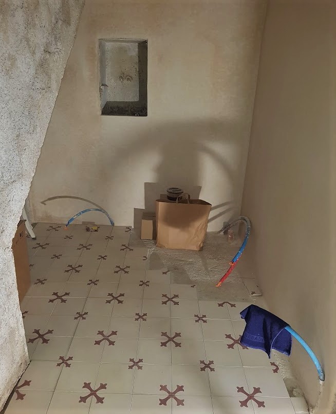 De första vattendropparna strilade fint ned i golvbrunnen och från nu finns det helt klart en medeltida dusch, i all fall hos oss i Peyriac-Minervois.